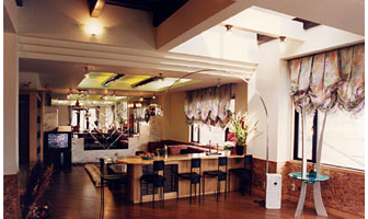 全ての壁を取払い、とにかく広いLDKをというご希望でした。一部吹き抜けを設けて、上部からの採光を取り入れました。間接照明や壁面に使用した面取りミラー等でお店のようなインテリアに仕上げました。