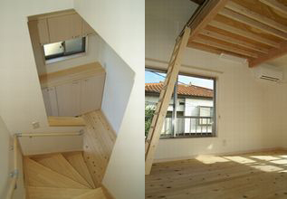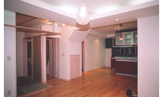 小さく分断された部屋を一新して、あこがれの広いLDKを確保しました。必要な部屋は、3階部分の天井裏を利用してロフトを作ったり、収納の工夫をしながら確保しました。