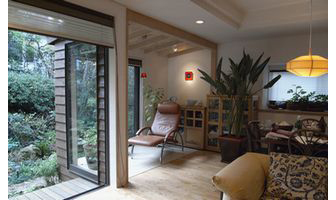 リビングダイニングの一部を増築して、美しい庭をより楽しめるようにした住宅になりました。自然素材(塗壁/珪藻土(カビに強いタイプ)、無垢フローリング/栗)をふんだんに使い、断熱ガラス入りサッシを組み合わせた心地よい空間。