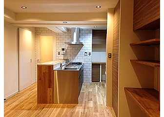 築30年のマンションをスケルトンリフォームしました。コストを抑えつつ、手作り感や高級感を出して仕上げています。2007年、INAXプランニングコンテスト入賞作品。
