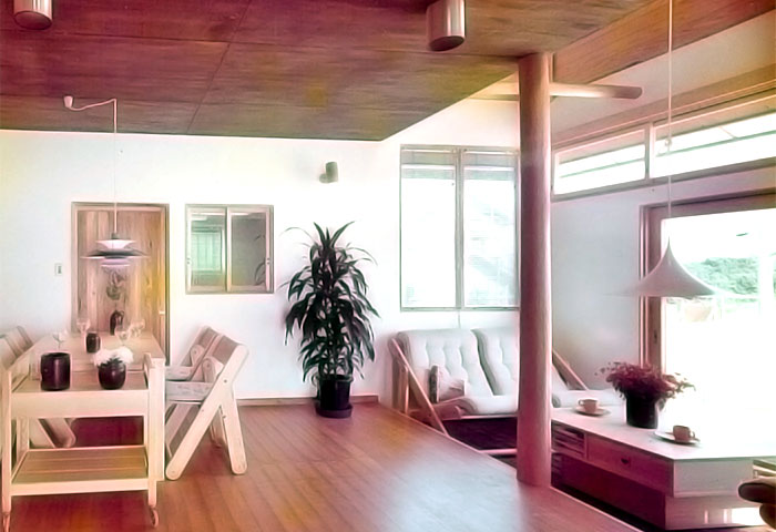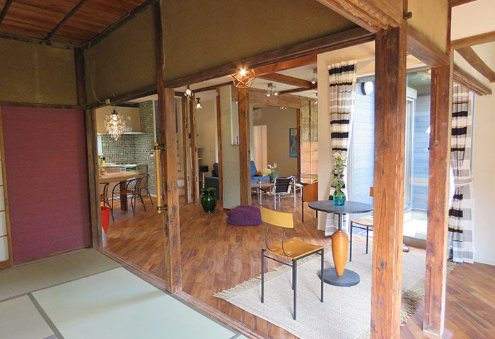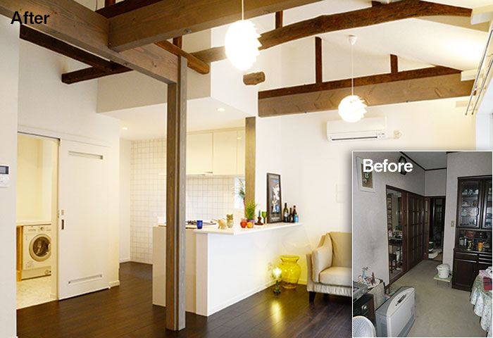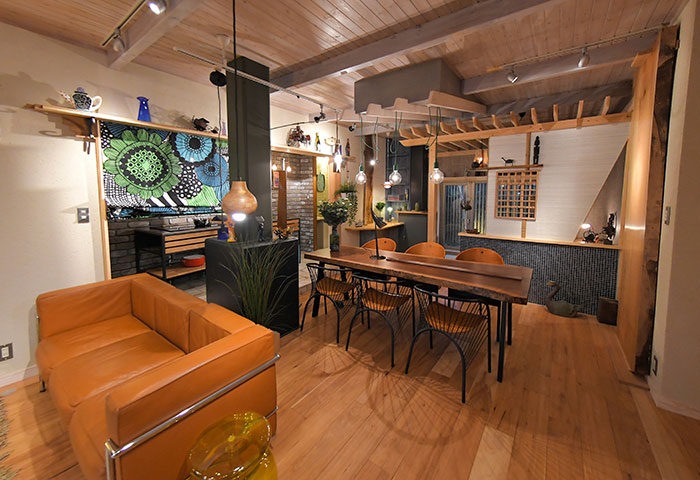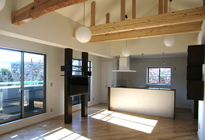 築60年の平屋建て民家の天井を取払い、モダンなリビングにしました。