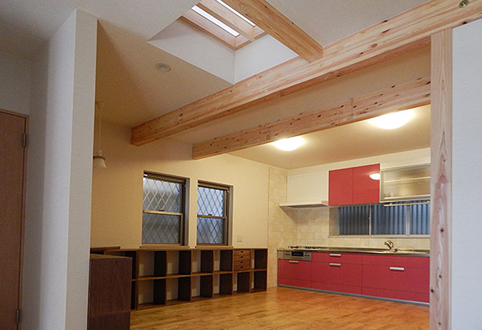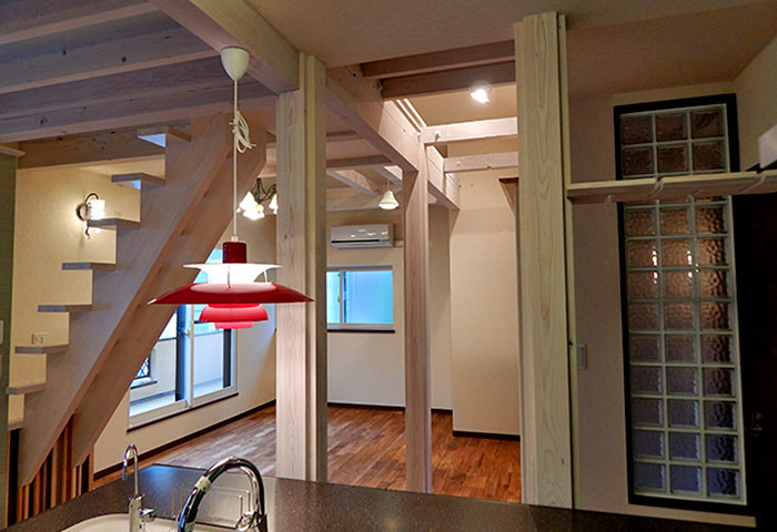 築35年の家を耐震補強して、暗いキッチンに2階の床を一部ガラスにして光を入れることにしました