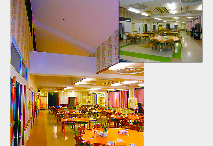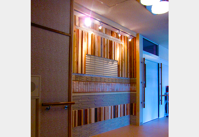 高齢者デイケアセンターのエントランス部分の壁面飾