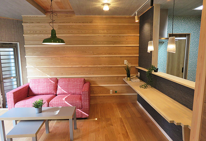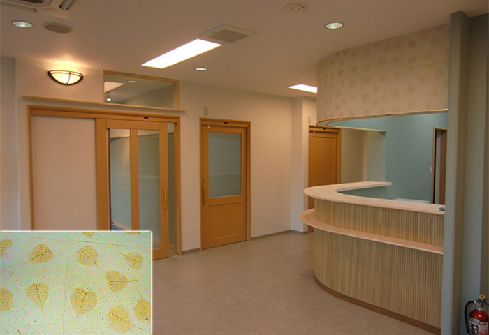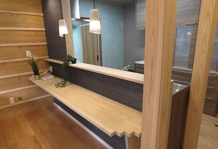 バリアフリーで患者にやさしく、ぬくもりを感じるクリニックの受付。