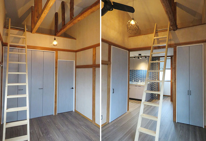 築48年の貸家を大胆にリノベーションして、各部屋にロフトを作りました。
