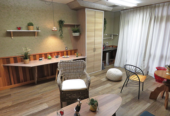 暖かい雰囲気が感じられるような高齢者施設のパブリックスペース。