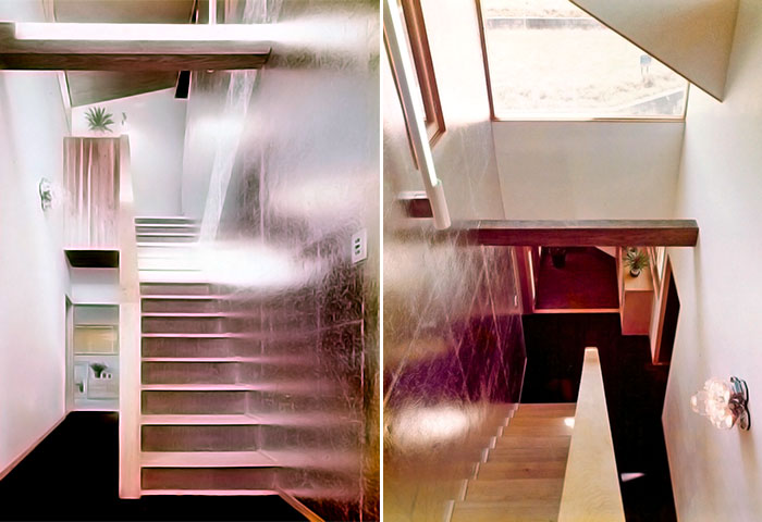 玄関と階段の壁に銀色の揉み紙を使用しました。