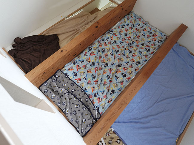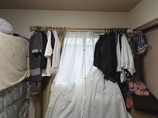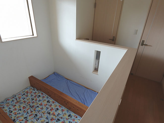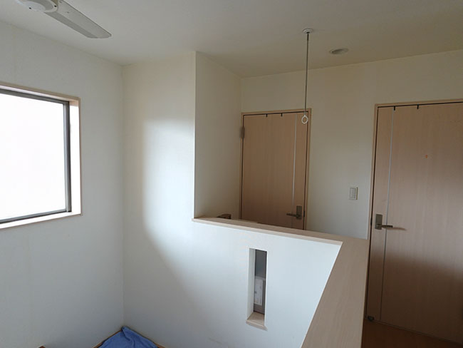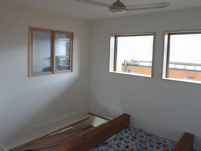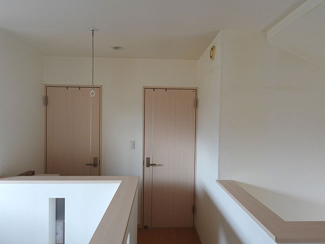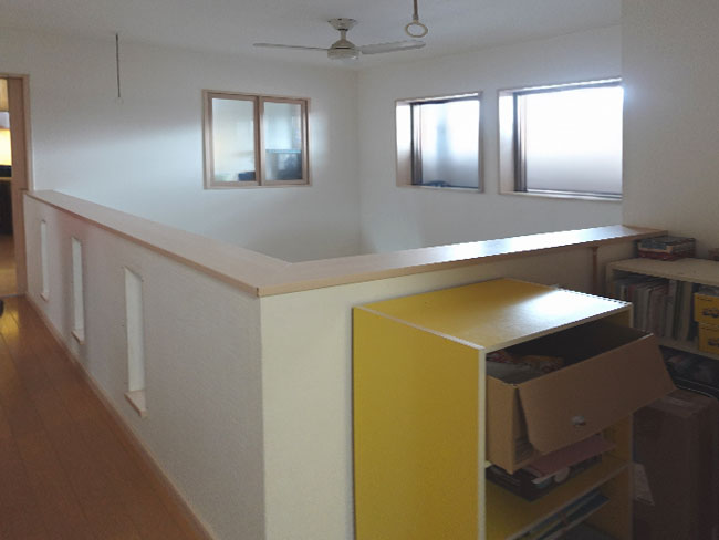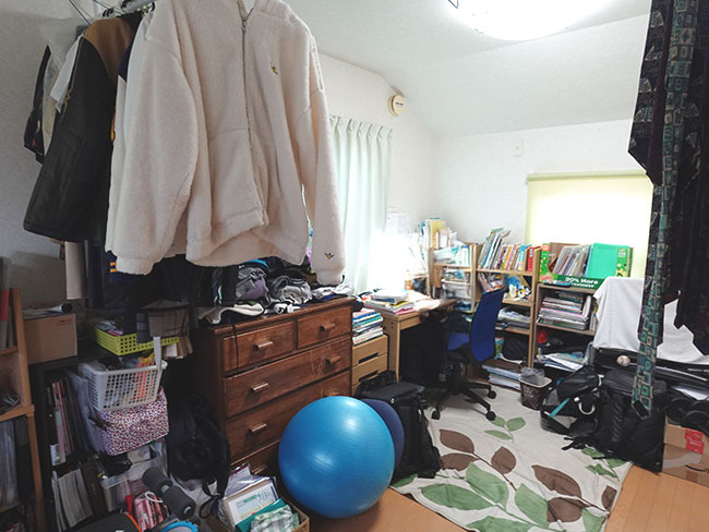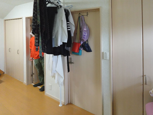 2階の子供部屋は子供たちが成長したら2部屋に分けられる様にと計画されたワンルームになってますが、2部屋に分けたところで収納部の確保が難しく、大学生と高校生になった子どもたちは年々、衣類や書籍や小物などが増えていく中で家にある空いているスペースをそれぞれが埋め尽くしていくような環境になってました。