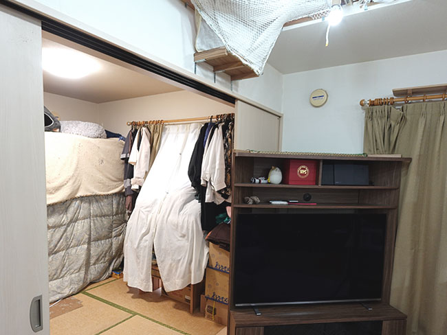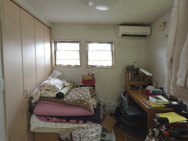 ご夫婦も同様に1階の和室が寝室、2階にある本来の寝室は家族それぞれの物置スペースと化してました。