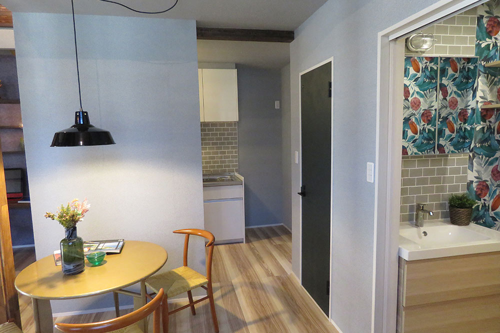 クレスト永井は人気の街立川駅より徒歩8分という通勤・通学に便利な場所にあります。2021年1月に完成し、フルリノベーションを行いました。レトロモダンなデザインでリモートオフィス兼住居には最適です。