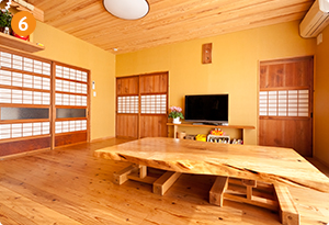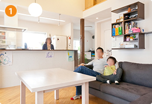 息子さん一家が住む2階部分は、増築によって床面積を拡大。吹き抜けのある大きなLDKには2つのロフトがあり、収納性も抜群です。栗の無垢材を使用したフローリングもこだわったポイントのひとつ。