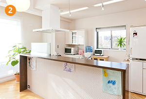 「家の中がすべて見渡せるように」と、キッチンはオープン対面タイプに。すべての部屋に目が届く、開放的なキッチンとなっています。以前の住まいよりもシンクが高くなったことで、「腰が痛くならなくなった」と奥様。