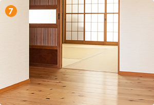 もともとあった廊下を縮小して、縁側を廃止。窓を拡大して、明るく広いリビングに。建具や欄間はそのままに、和モダンな雰囲気になりました。杉の木を使った無垢のフローリングは、造園業を営む施主様のこだわり。