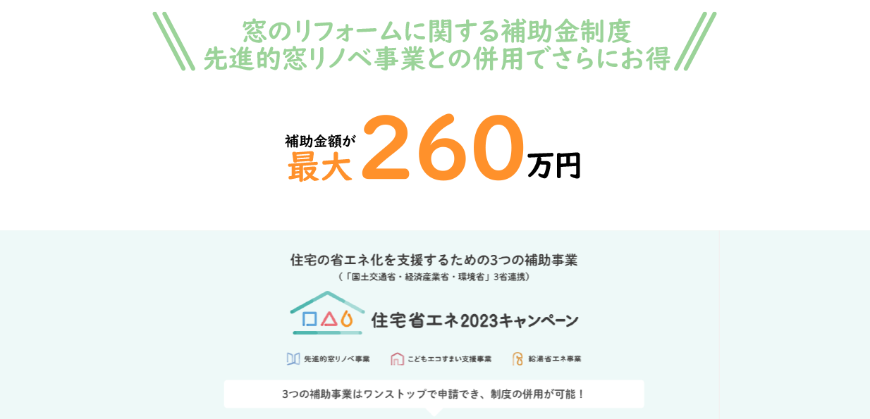 子育て世帯や若者夫婦世帯による「高い省エネ性能を有する新築住宅の取得」や「住宅の省エネリフォーム」等に対して補助金が交付される制度です。窓リフォームに関する他の補助金制度との併用も可能です。