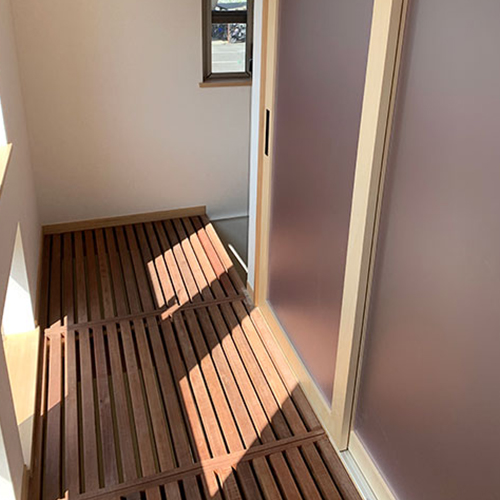 階下に明るさと風が届くように個室の前室の南側3尺はルーバー状に床を組みました。
