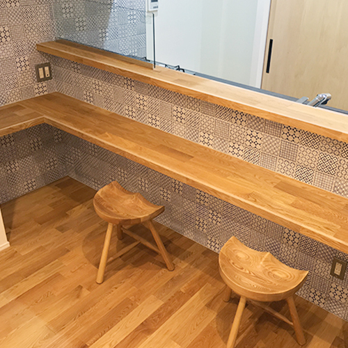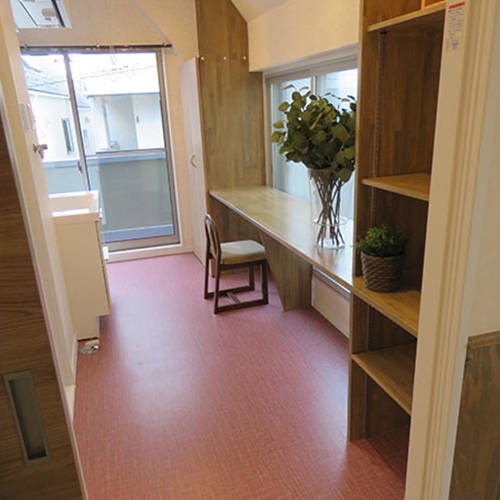 ユーティリティスペースに造作の机を設置しました。洗濯などの家事の合間に少しくつろいだり、趣味の時間に使ったり有意義な時間を持てます。