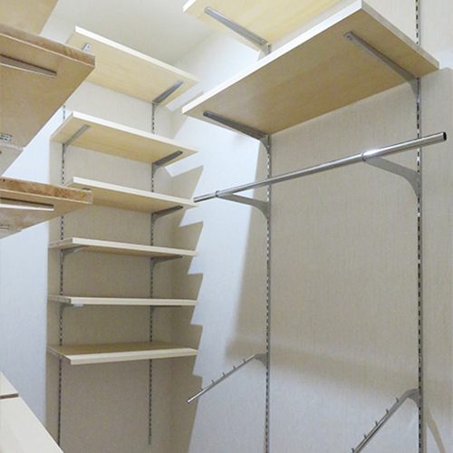 収納スペースは可動式にしました。所持品の高さに合わせて設置できるので、無駄がなく大容量の収納が出来ます。