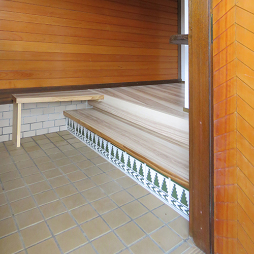 玄関は一段ステップを足して一番下段にタイルを貼りました。木質の物が多いなか可愛らしいアクセントになっています。