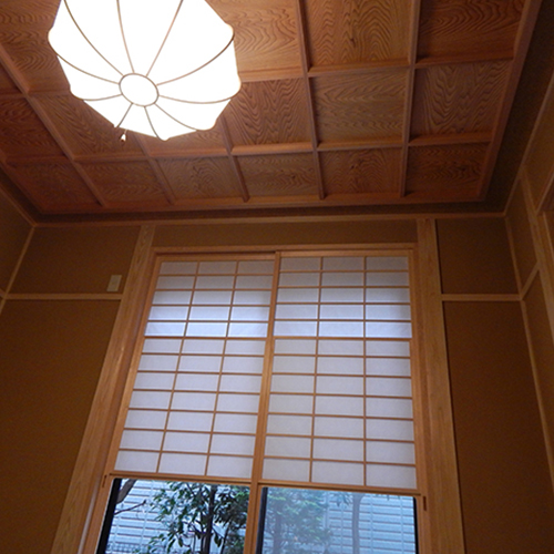 今どき珍しい雪見障子と秋田杉の格子天井。