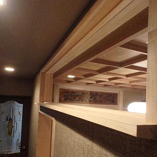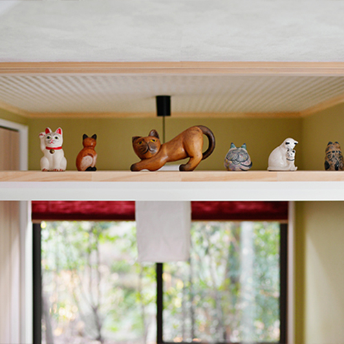 和室の天井はオープンになっていて、飾り棚を設置しました。飾り棚があると、よりお気に入りの空間が出来ます。