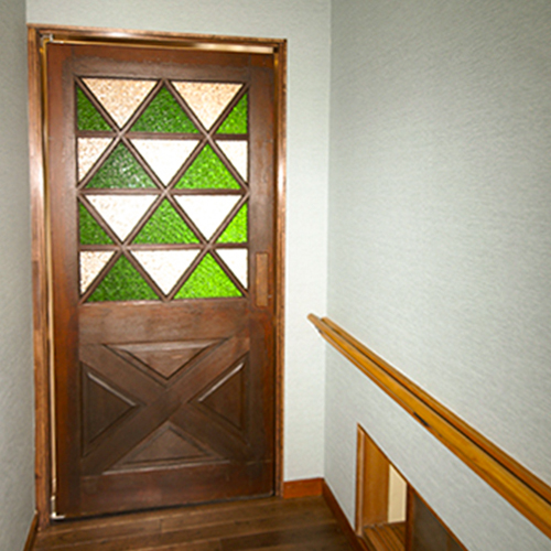 リビング入口のアンティークなドアは施主様自ら気に入って購入されたもの。