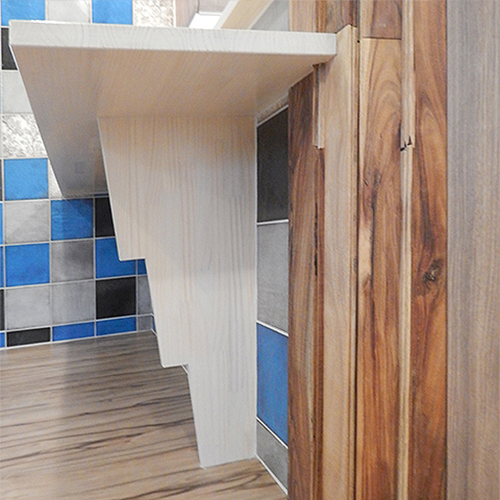 カウンターを支える支柱のデザイン。配膳台、簡単な食事用として使えます。