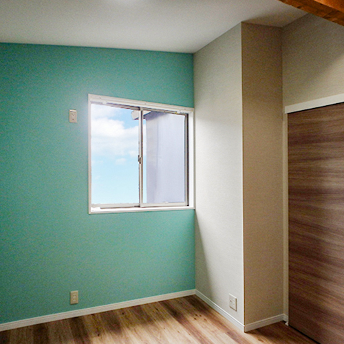 アクセントクロスは施主様に選んだもの。鮮やかなブルーが爽やかです。