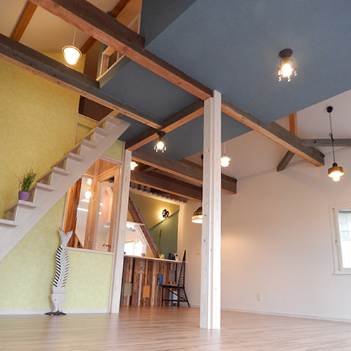 2階にLDKを移設し、天井を吹抜けにしてロフトを造作しました。